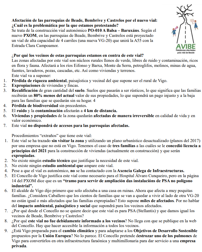 - La Voz de Galicia. Beade/Bembrive protestan ante o pleno de Vigo.